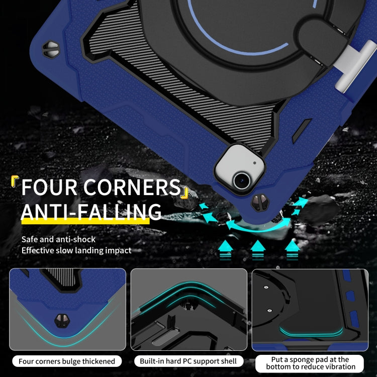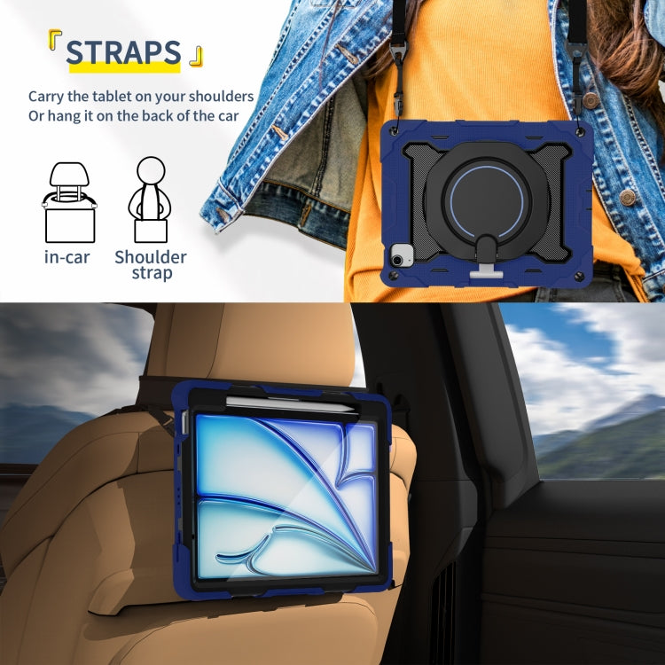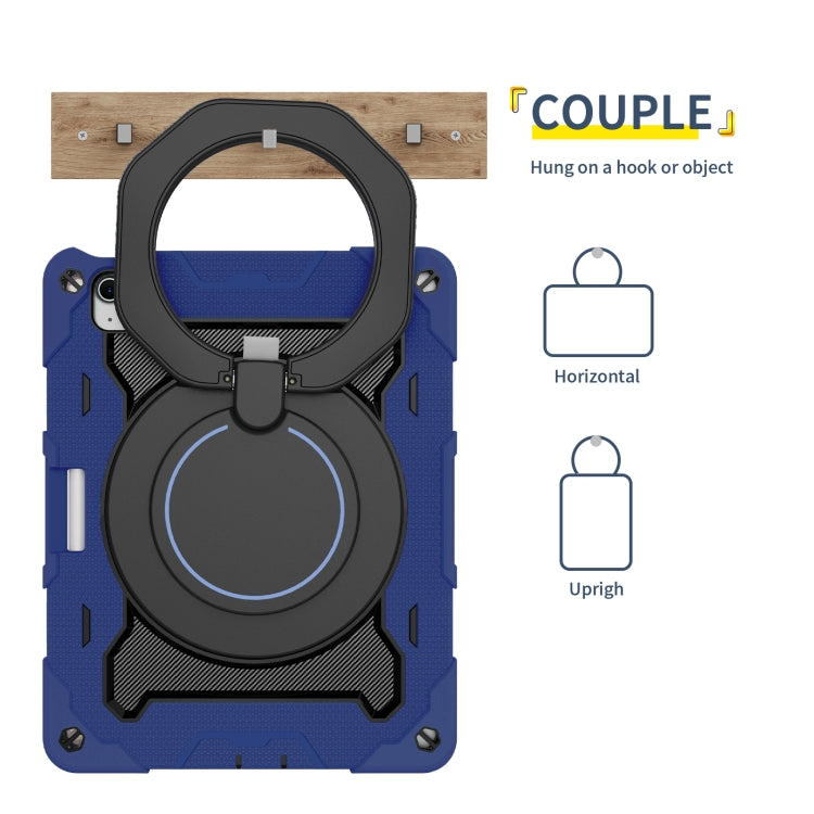 For iPad Air 11 2024 / 2025 Armor Portable Rotating Ring Holder Silicone Tablet Case with Pen Slot(Navy Blue)