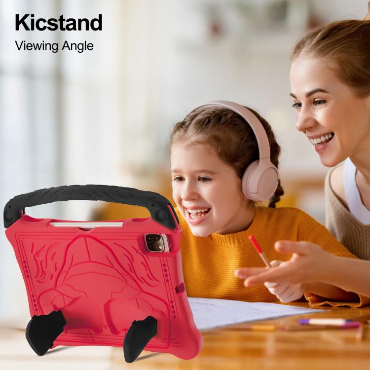 For iPad Air 11 2024 / 2025 Boxing Series Kickstand EVA Shockproof Tablet Case with Shoulder Strap(Red Black)