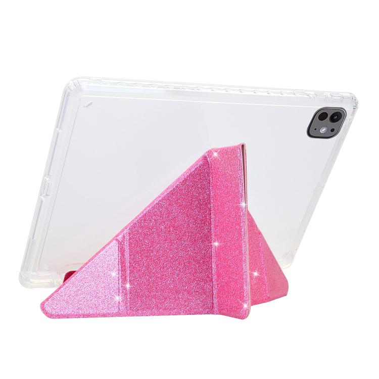 For iPad Air 11 2025 / 2024 Y-Fold Clear Acrylic Glitter Smart Leather Tablet Case(Pink)