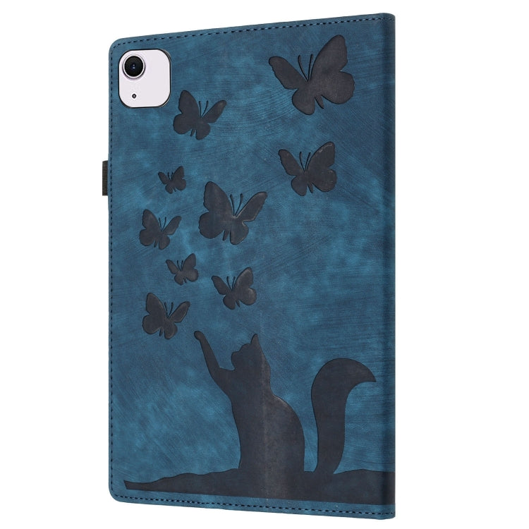 For iPad Air 11 2024 / Air 11 2025 Butterfly Cat Embossing Leather Tablet Case(Dark Blue)