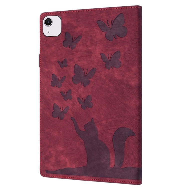 For iPad Air 11 2024 / Air 11 2025 Butterfly Cat Embossing Leather Tablet Case(Red)