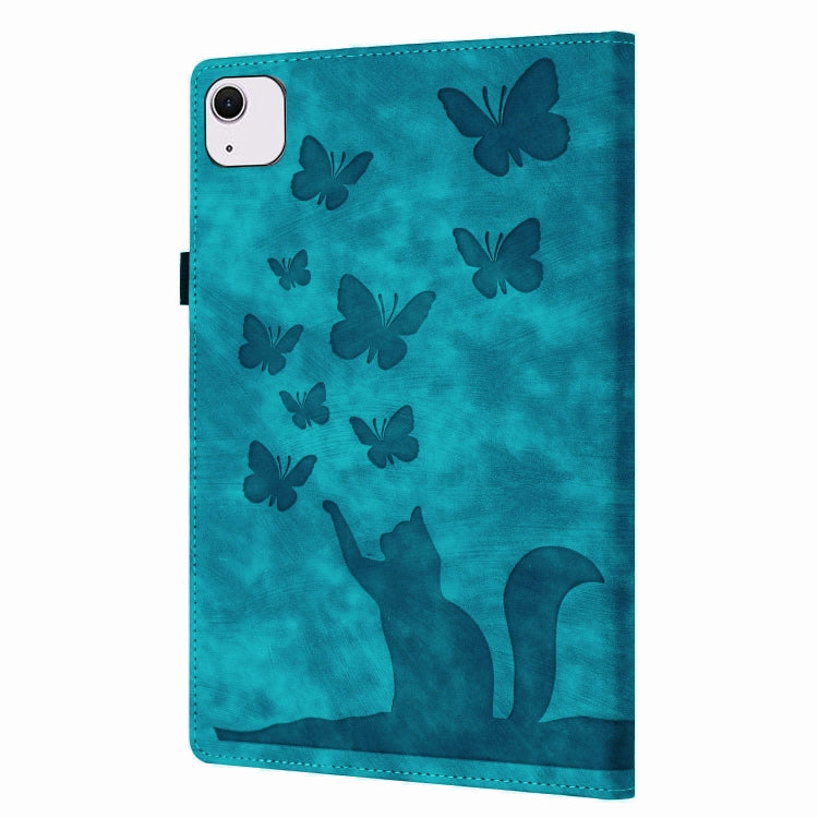 For iPad Air 11 2024 / Air 11 2025 Butterfly Cat Embossing Leather Tablet Case(Sky Blue)