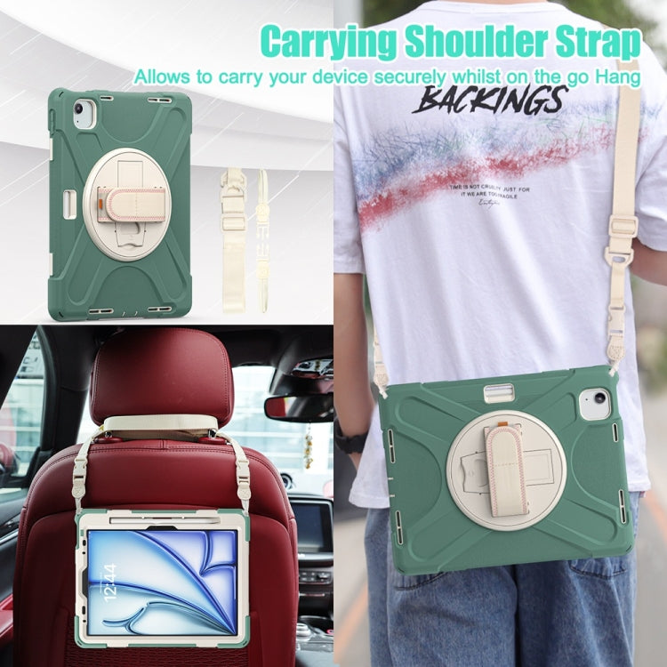 For iPad Air 11 2024 / Air 11 2025 Rotatable Holder Silicone Hybrid PC Tablet Case with Shoulder Strap(Emreald Green)