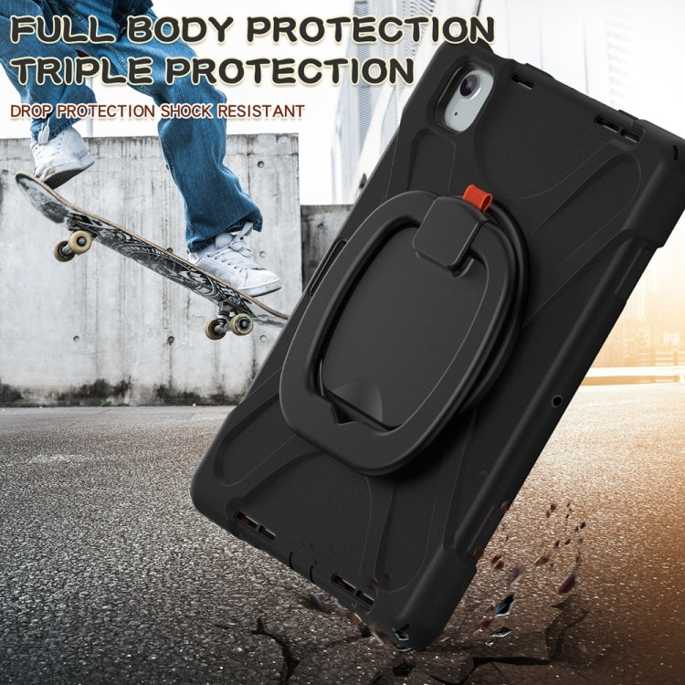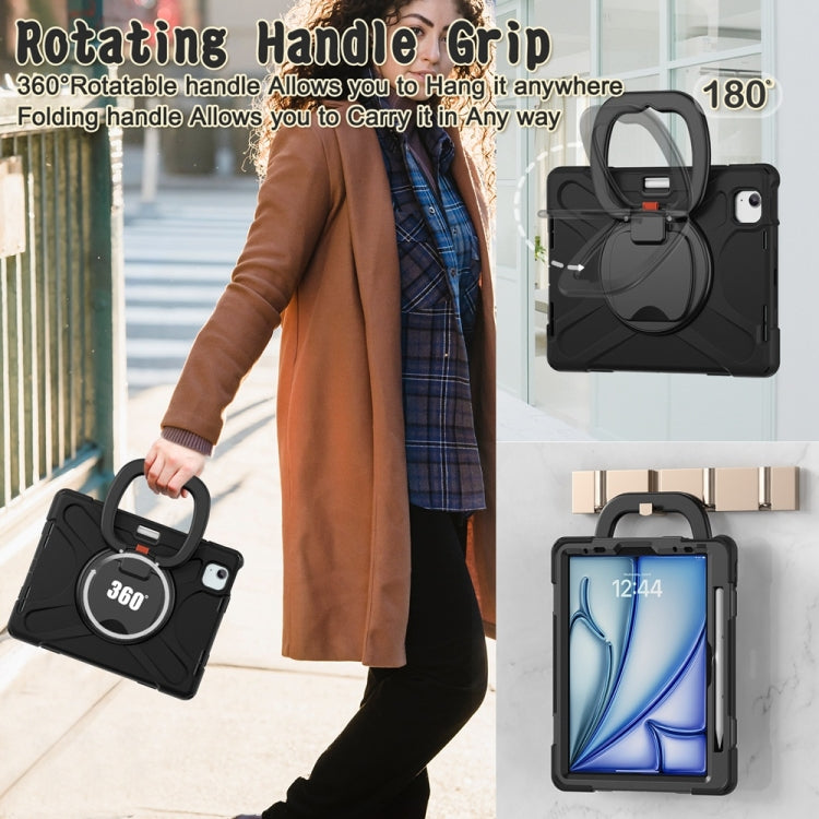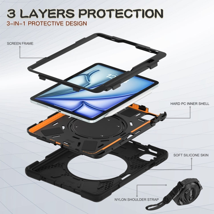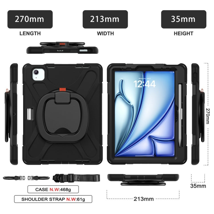 For iPad Air 11 2024 / Air 11 2025 Silicone Hybrid PC Tablet Case with Holder & Shoulder Strap(Black)