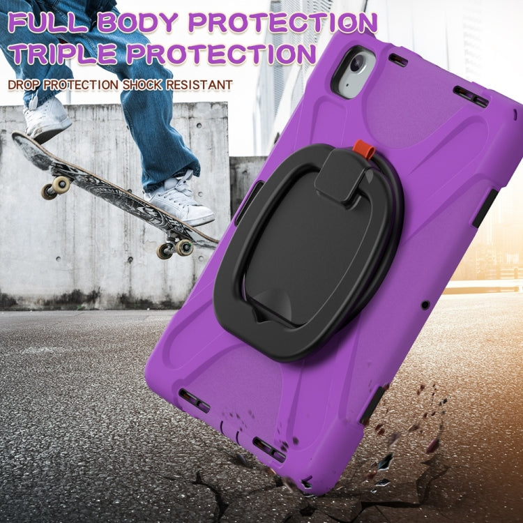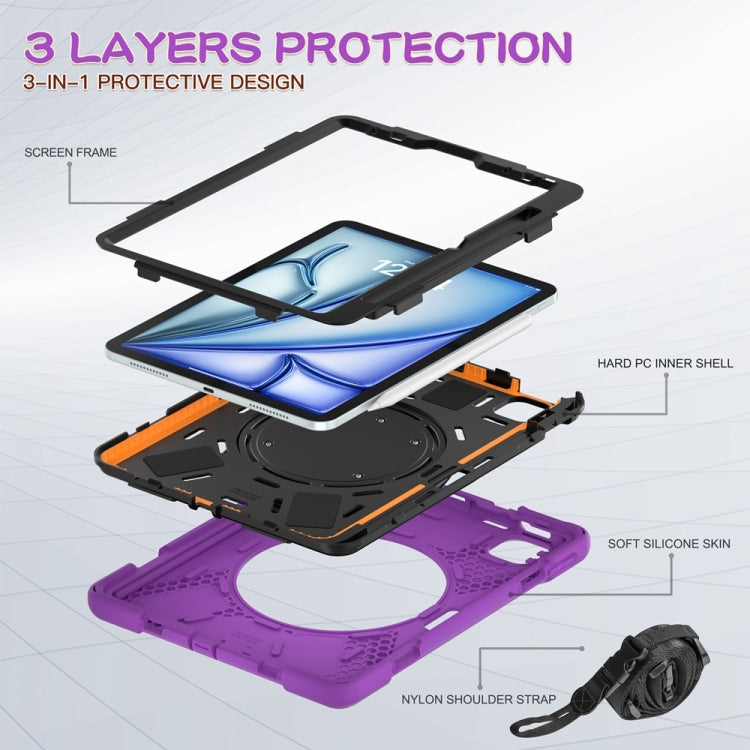 For iPad Air 11 2024 / Air 11 2025 Silicone Hybrid PC Tablet Case with Holder & Shoulder Strap(Purple)