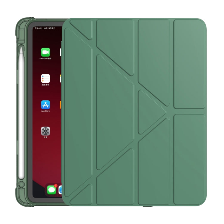 For iPad Air 11 2024 / Air 2022 10.9 Multi-folding Matte Surface Leather Tablet Case with Pen Slot(Dark Green)