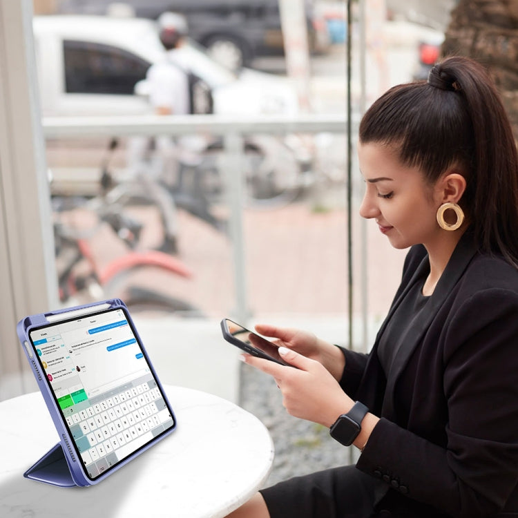 For iPad Air 11 2025 / 2024 3-fold TPU Smart Leather Tablet Case with Pen Slot(Lavender Purple)