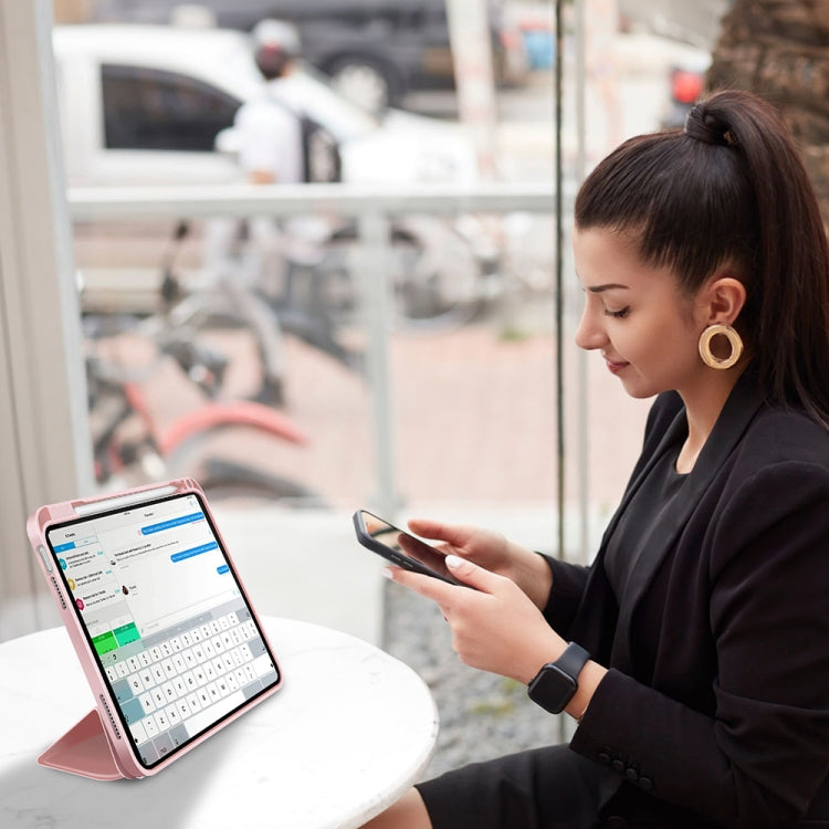 For iPad Air 11 2025 / 2024 3-fold TPU Smart Leather Tablet Case with Pen Slot(Pink)