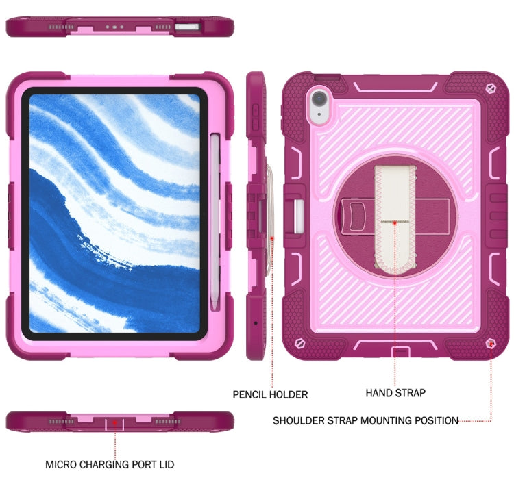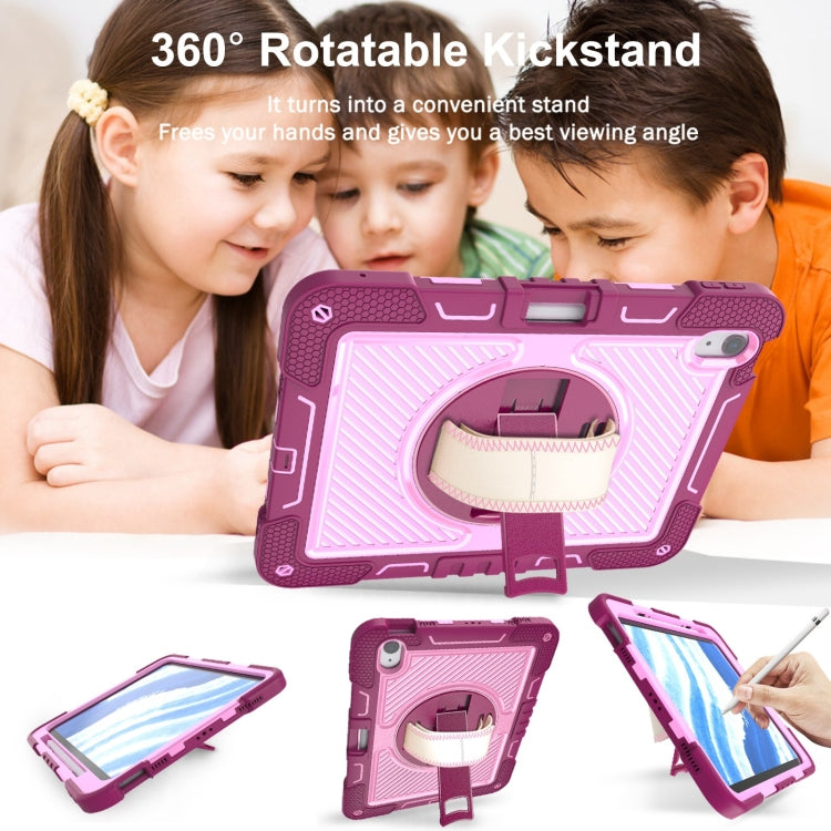 For iPad Air 11 2025 / 2024 360 Degree Rotation PC Contrast Silicone Tablet Case(Rose Red + Pink)