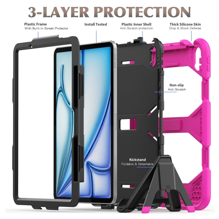 For iPad Air 11 2025 / 2024 Colorful Silicone Heavy Duty Hybrid PC Tablet Case(Rose Red)