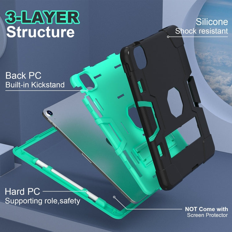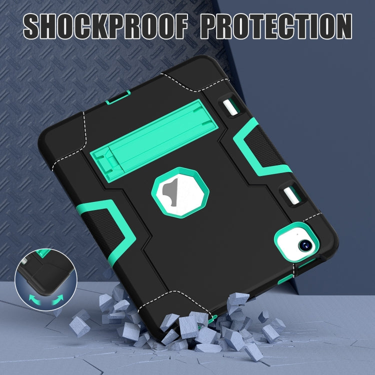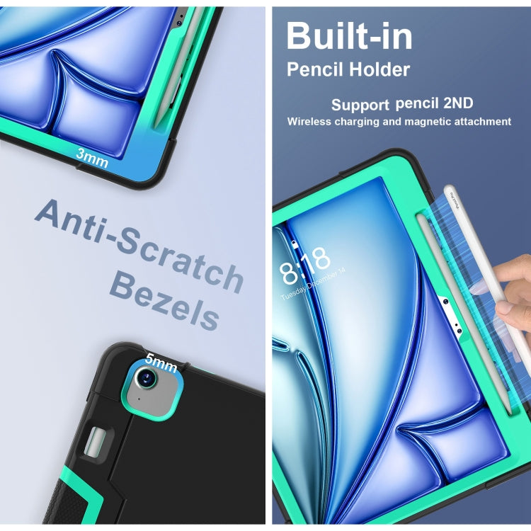 For iPad Air 11 2025 / 2024 Contrast Color Silicone Acrylic PC Tablet Case with Holder(Black Mint Green)