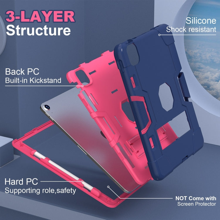 For iPad Air 11 2025 / 2024 Contrast Color Silicone Acrylic PC Tablet Case with Holder(Navy Blue Rose Red)