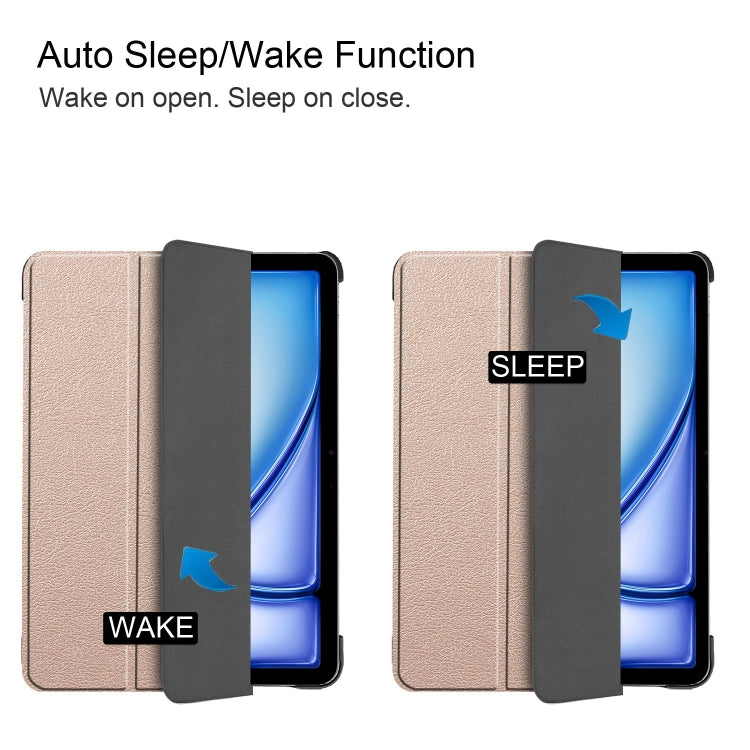 For iPad Air 11 2025 / 2024 Custer Pure Color 3-Fold Holder Smart Leather Tablet Case(Gold)