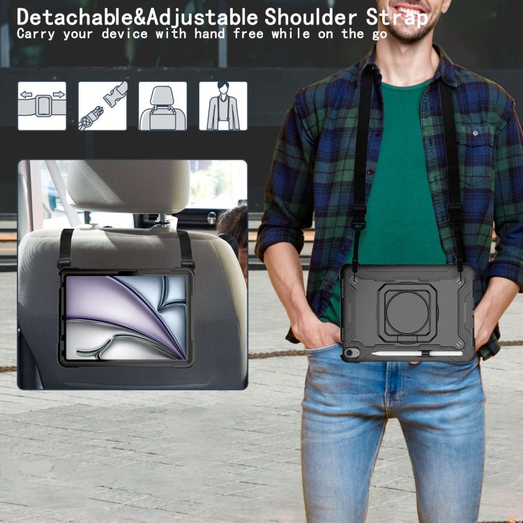For iPad Air 11 2025 / 2024 Handle Grip Holder Silicone Hybrid PC Tablet Case with Strap(Black)