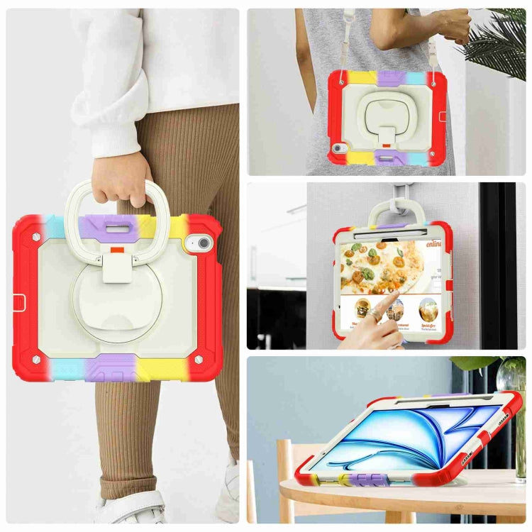 For iPad Air 11 2025 / 2024 Handle Silicone Hydric PC Tablet Case with Shoulder Strap(Rainbow Red)