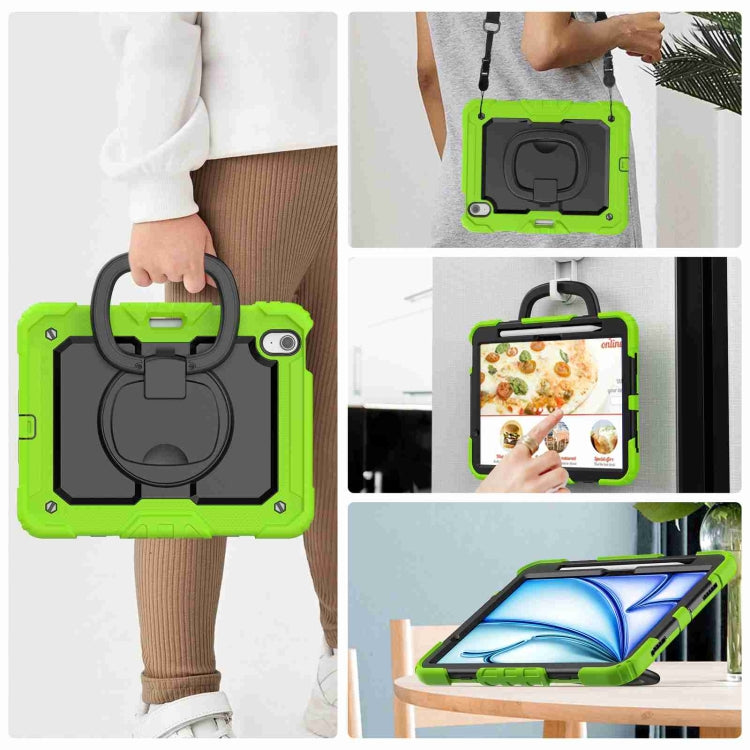 For iPad Air 11 2025 / 2024 Handle Silicone Hydric PC Tablet Case with Shoulder Strap(Yellow Grenn)