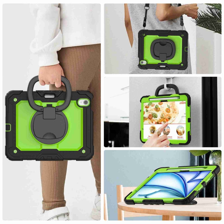 For iPad Air 11 2025 / 2024 Handle Silicone Hydric PC Tablet Case with Shoulder Strap(Yellow Grenn PC)
