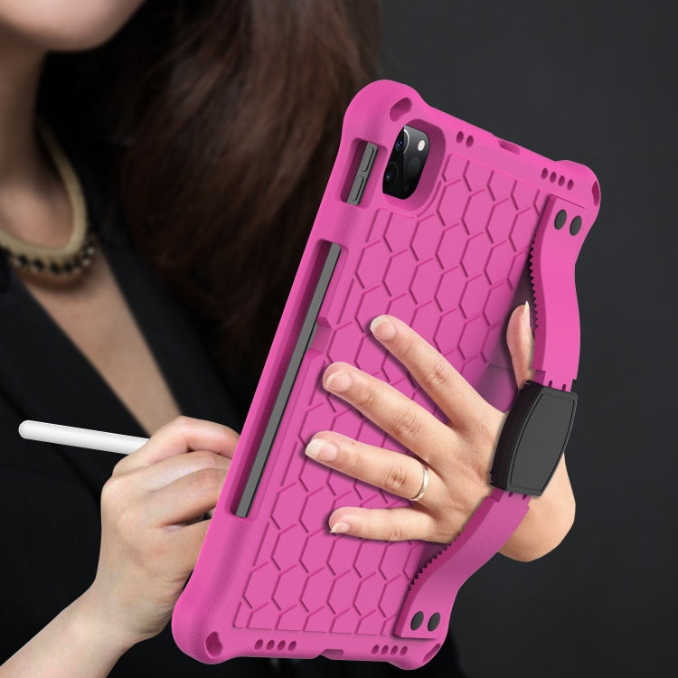 For iPad Air 11 2025 / 2024 Honeycomb EVA Hybrid PC Tablet Case with Strap(RoseRed+Black)