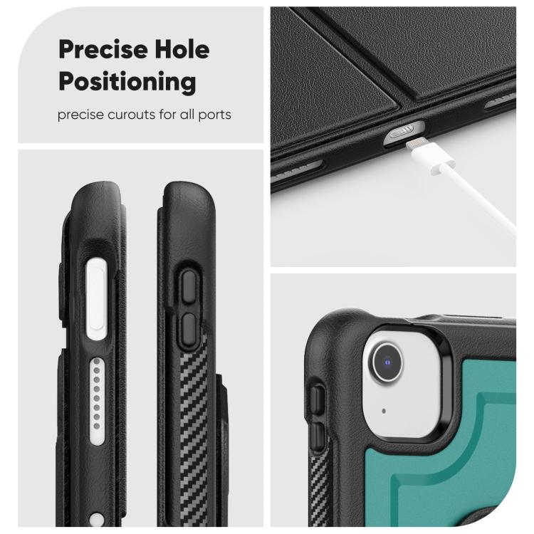 For iPad Air 11 2025 / 2024 Honeycomb Magnetic Rotation Holder Leather Smart Tablet Case(Dark Green)