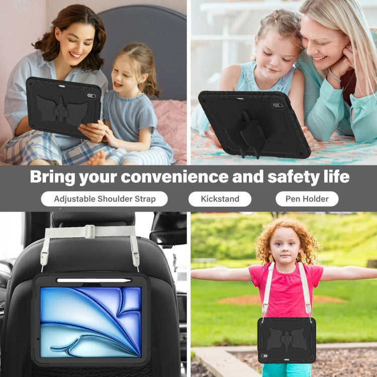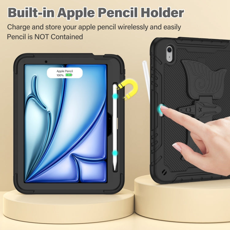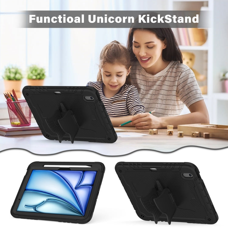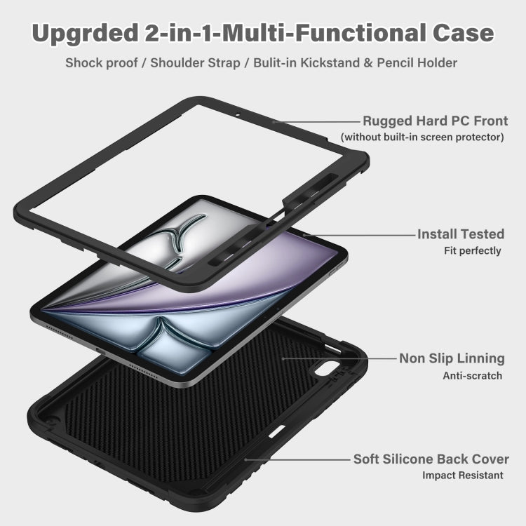 For iPad Air 11 2025 / 2024 Kickstand PC Hybrid Silicone Tablet Case with Strap(Black)