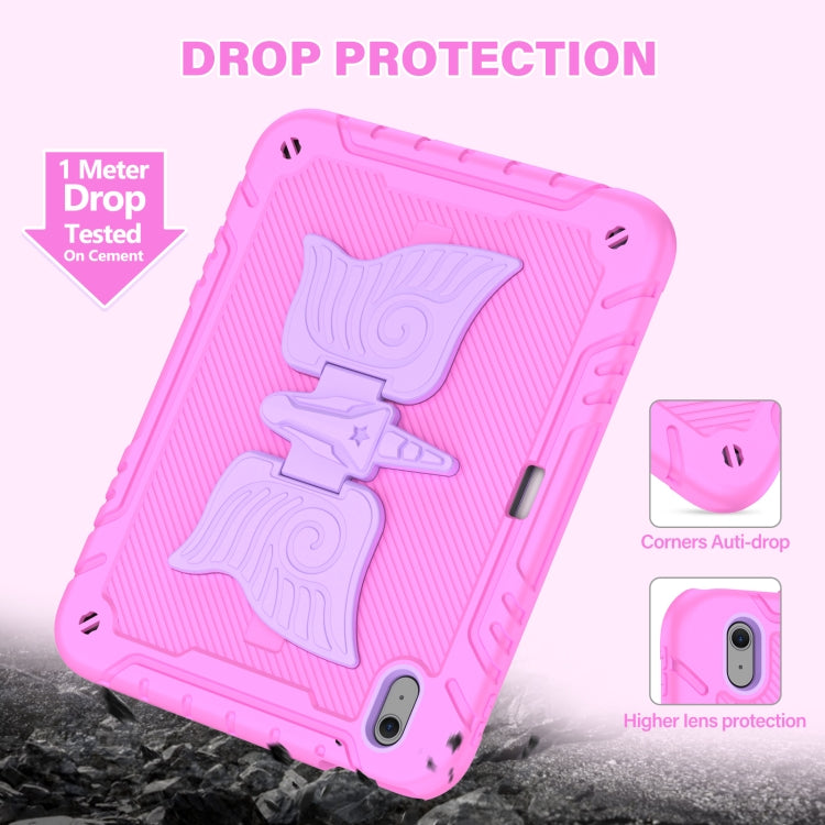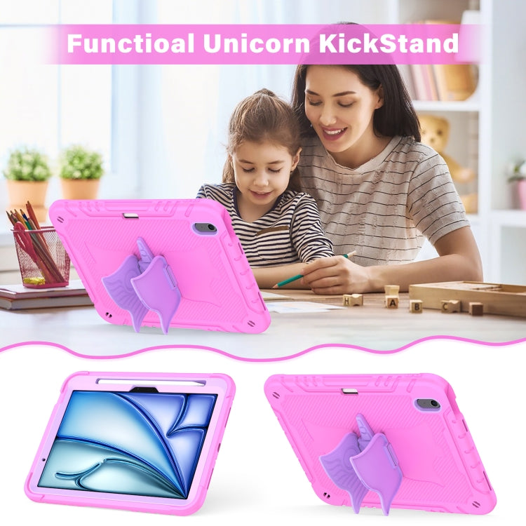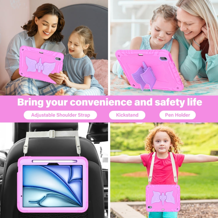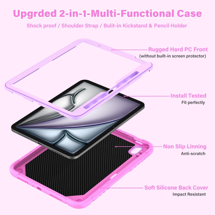 For iPad Air 11 2025 / 2024 Kickstand PC Hybrid Silicone Tablet Case with Strap(Pink Purple)