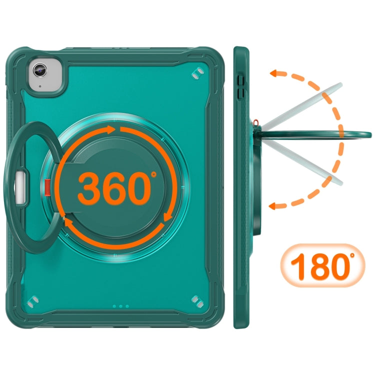 For iPad Air 11 2025 / 2024 Powerful Sailor Ring Holder Heavy Duty Hybrid Tablet Case with Strap(Dark Green)
