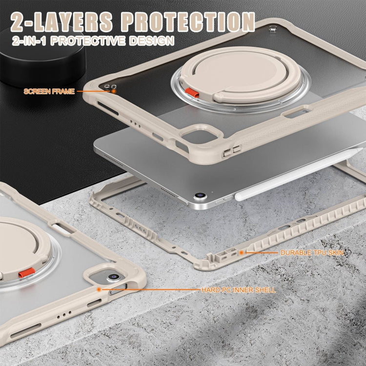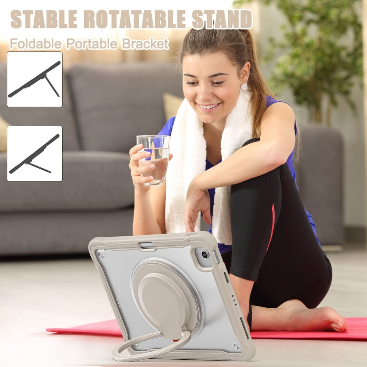 For iPad Air 11 2025 / 2024 Powerful Sailor Ring Holder Heavy Duty Hybrid Tablet Case with Strap(Khaki)