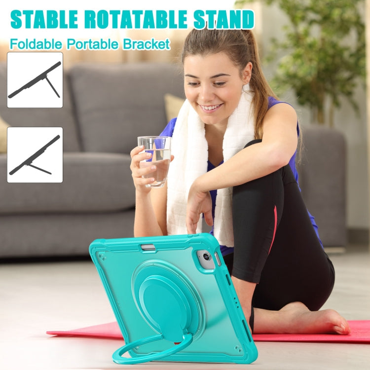 For iPad Air 11 2025 / 2024 Powerful Sailor Ring Holder Heavy Duty Hybrid Tablet Case with Strap(Light Blue)