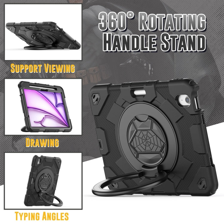 For iPad Air 11 2025 / 2024 Spider Rotation Handle Silicone Hybrid PC Tablet Case(Black)
