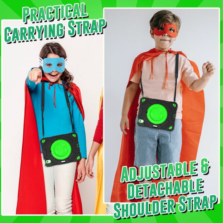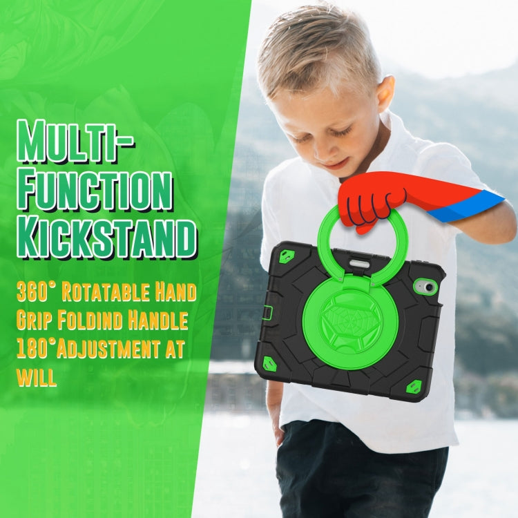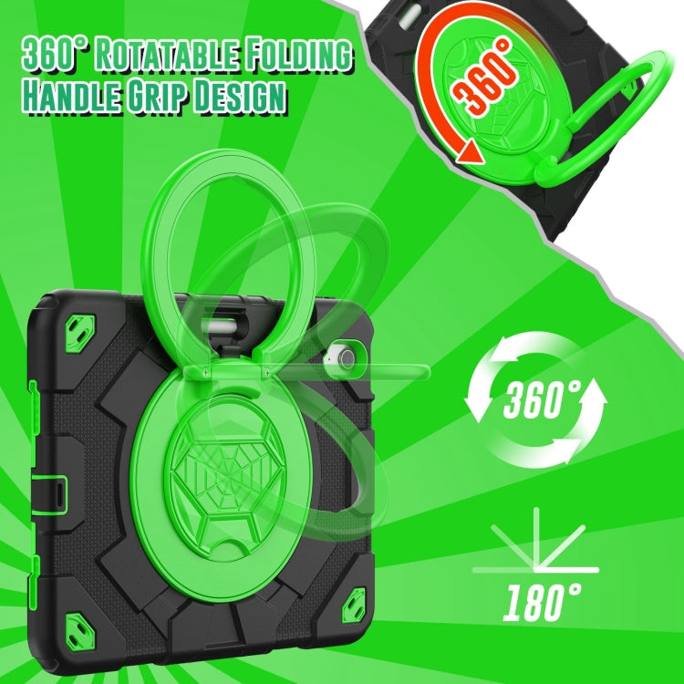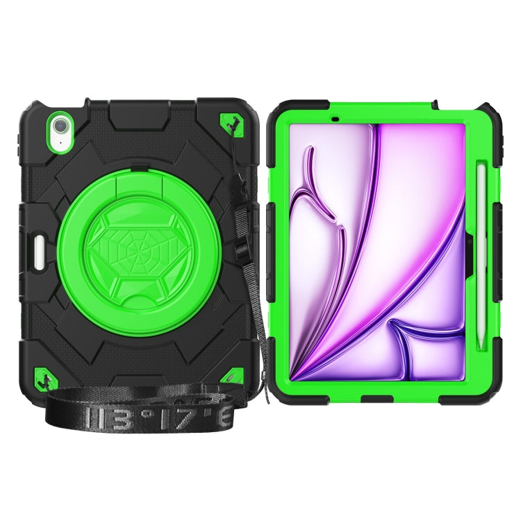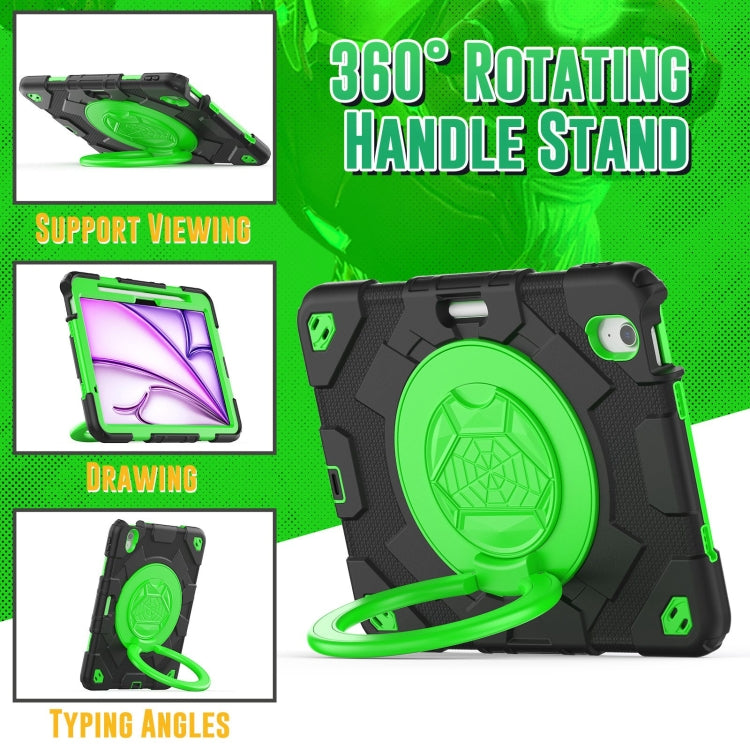 For iPad Air 11 2025 / 2024 Spider Rotation Handle Silicone Hybrid PC Tablet Case(Black Green)