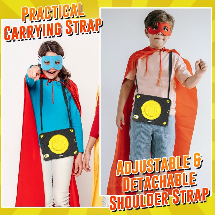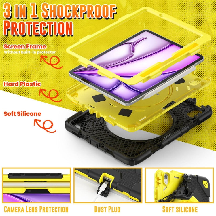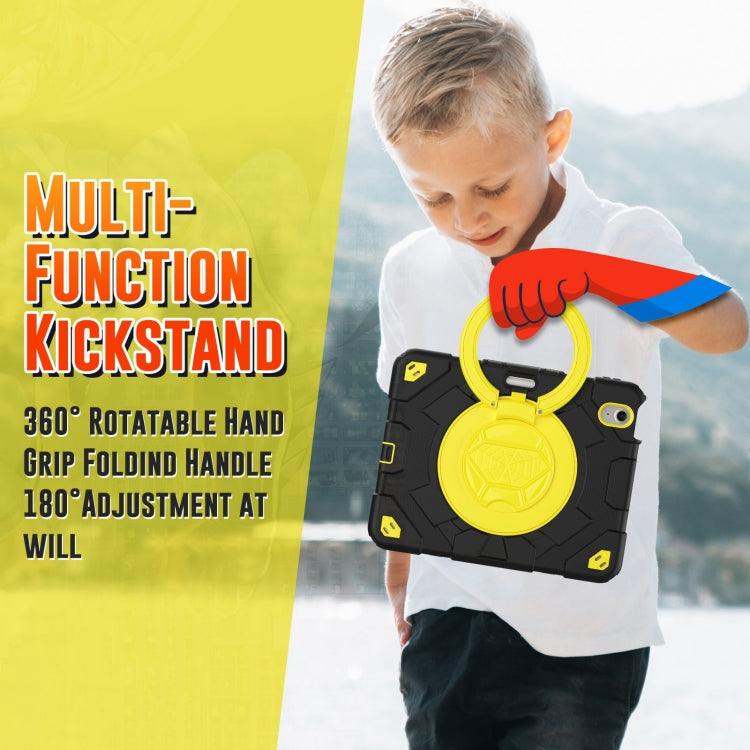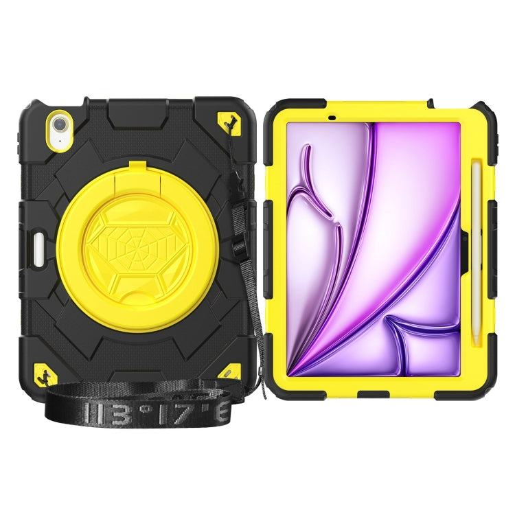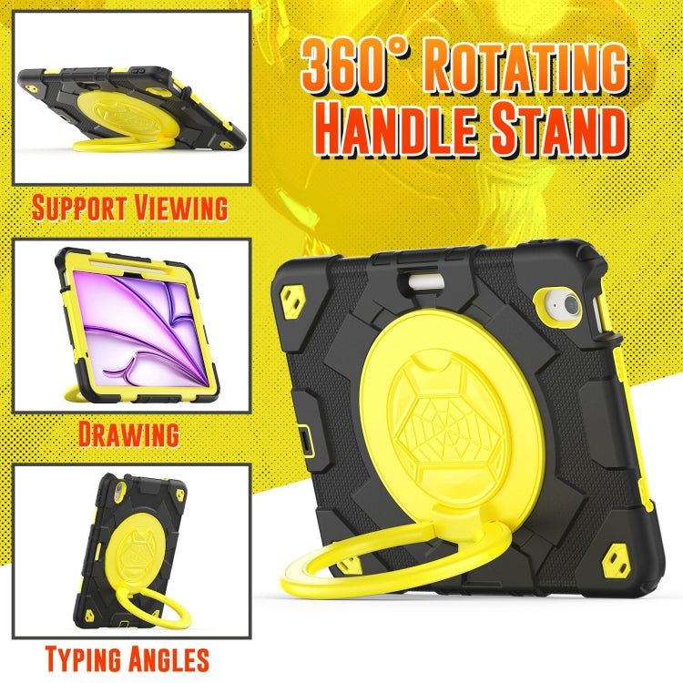 For iPad Air 11 2025 / 2024 Spider Rotation Handle Silicone Hybrid PC Tablet Case(Black Yellow)