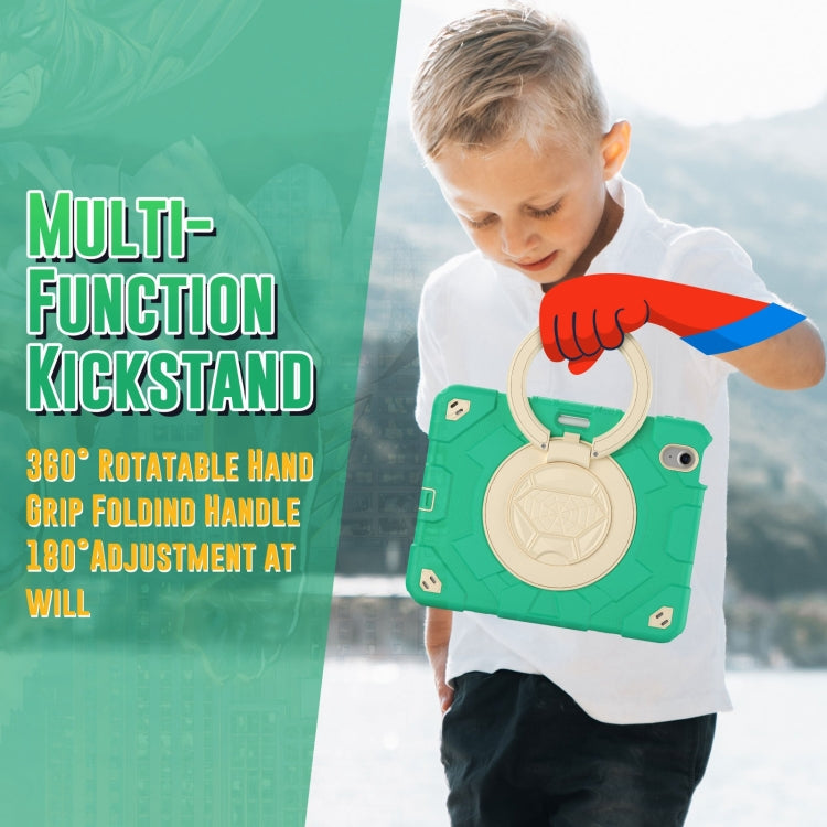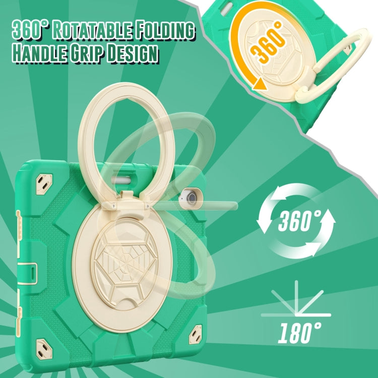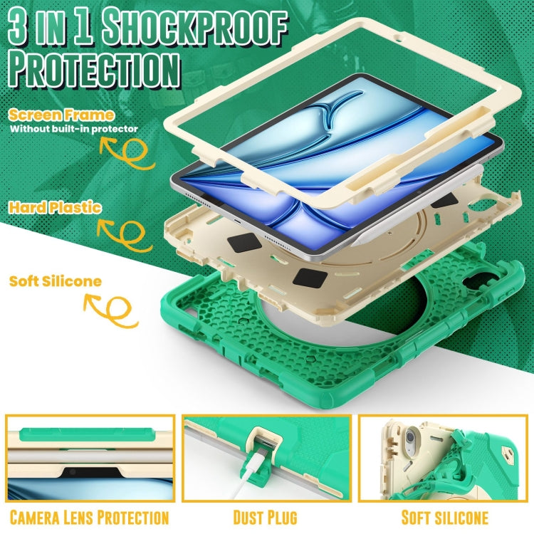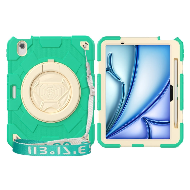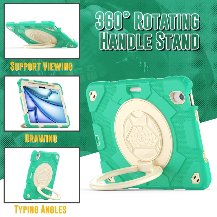 For iPad Air 11 2025 / 2024 Spider Rotation Handle Silicone Hybrid PC Tablet Case(Cyan Beige)