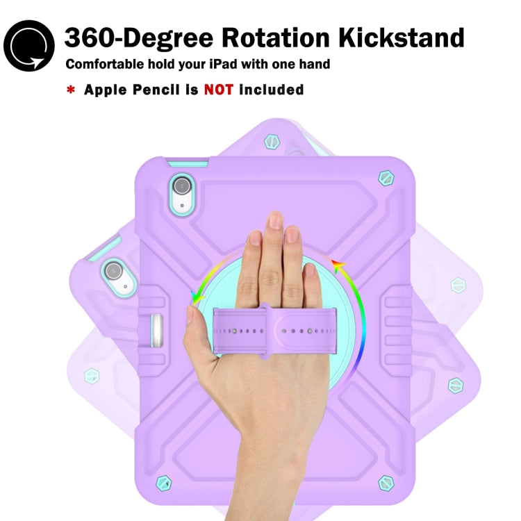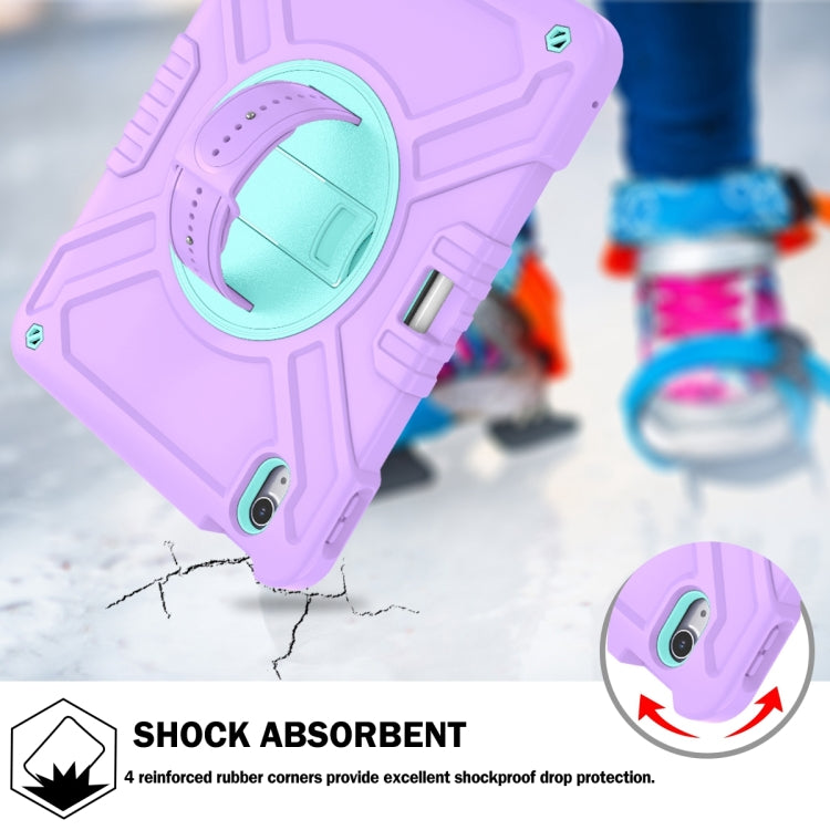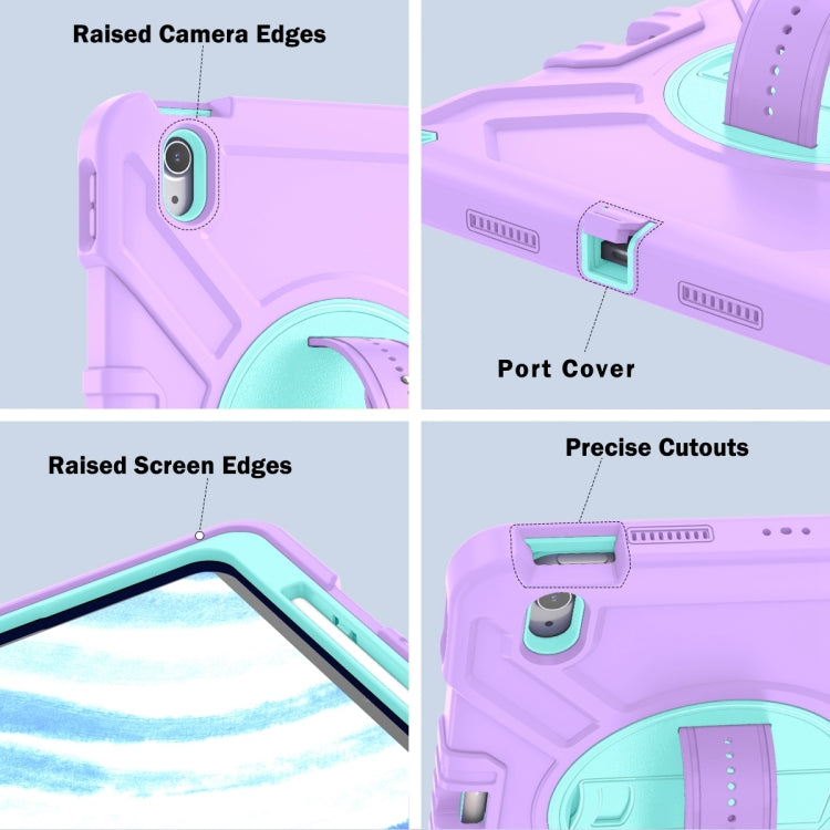 For iPad Air 11 2025 / 2024 X Rotation PC Hybrid Silicone Tablet Case with Strap(Purple Cyan)