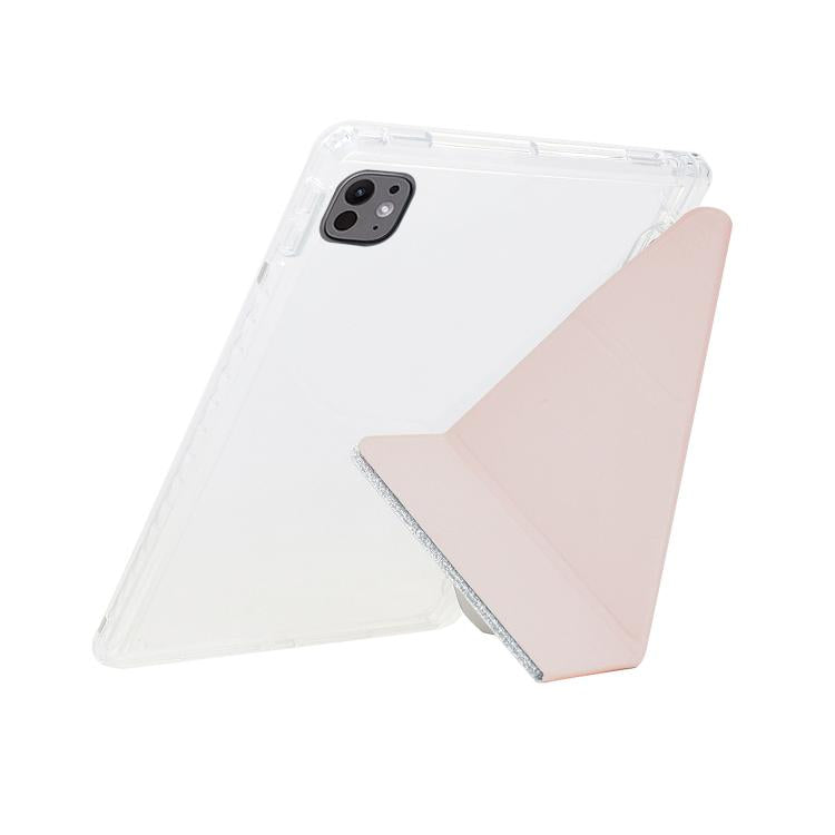For iPad Air 13 2024 / 2025 / Pro 12.9 Y-Fold Clear Acrylic Glitter Smart Leather Tablet Case(Pink)