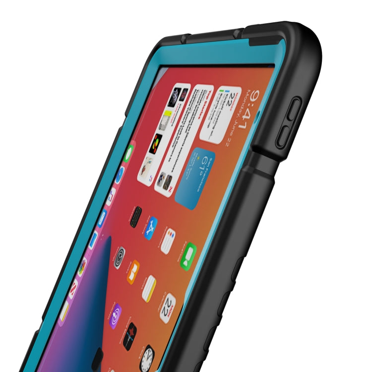 For iPad Air 2022 / 2020 10.9 Armor Holder Silicone Hybrid PC Tablet Case(Black Blue)