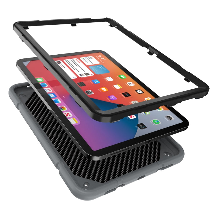 For iPad Air 2022 / 2020 10.9 Armor Holder Silicone Hybrid PC Tablet Case(Grey Black)