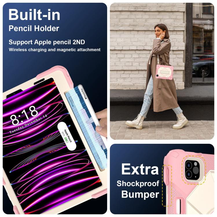 For iPad Air 5 / 4 / Pro 11 Contrast Color Robot Silicone Hybrid PC Tablet Case(Rose Gold Beige)