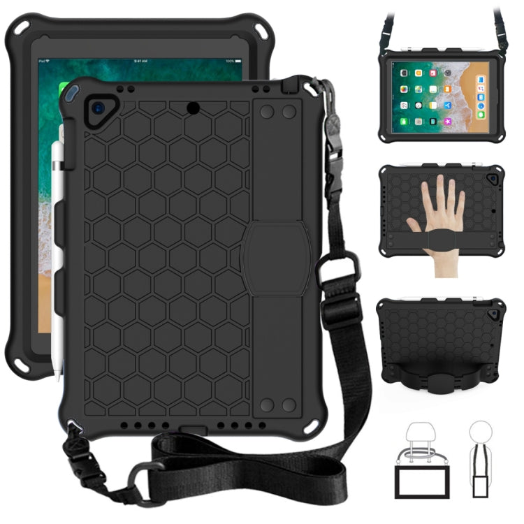 For iPad Air / Air 2 / Pro 9.7 / iPad 9.7 (2017) / iPad 9.7 (2018) Honeycomb Design EVA + PC Four Corner Shockproof Protective Case with Straps(Black+Black)