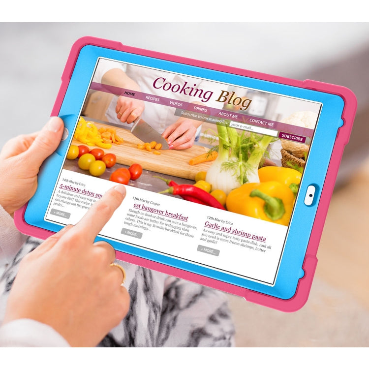 For iPad Air/Air2/Pro9.7 EVA + PC Flat Protective Shell with 360 ° Rotating Bracket(Rose Red+Blue)