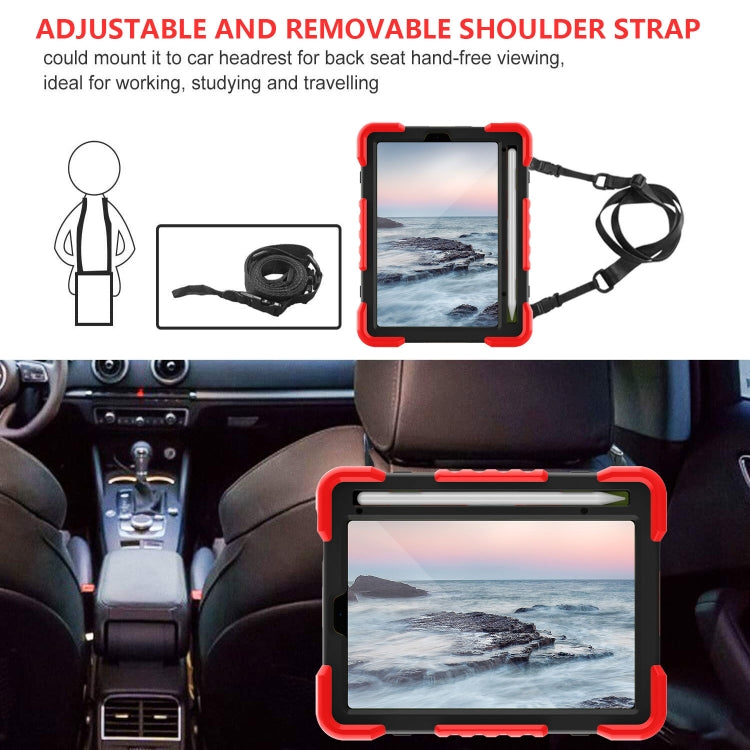 For iPad mini 2024 / mini 6 Silicone + PC Tablet Case with Strap & Holder & Pen Slot(Red + Black)
