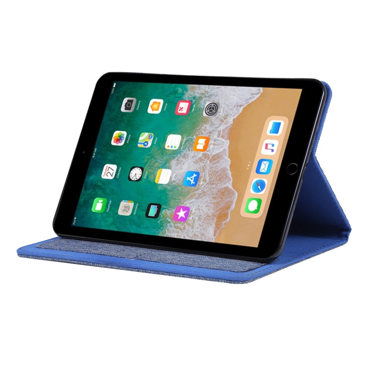 For iPad Mini 4 / 3 / 2 / 1 Cloth Teature Horizontal Flip PU Leather Case with with Holder & Card Slots(Deep Blue)