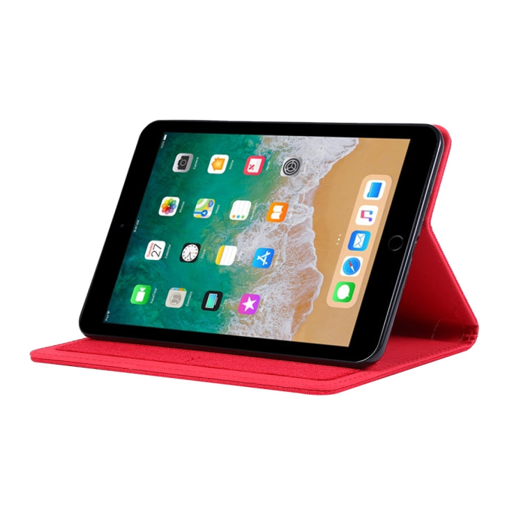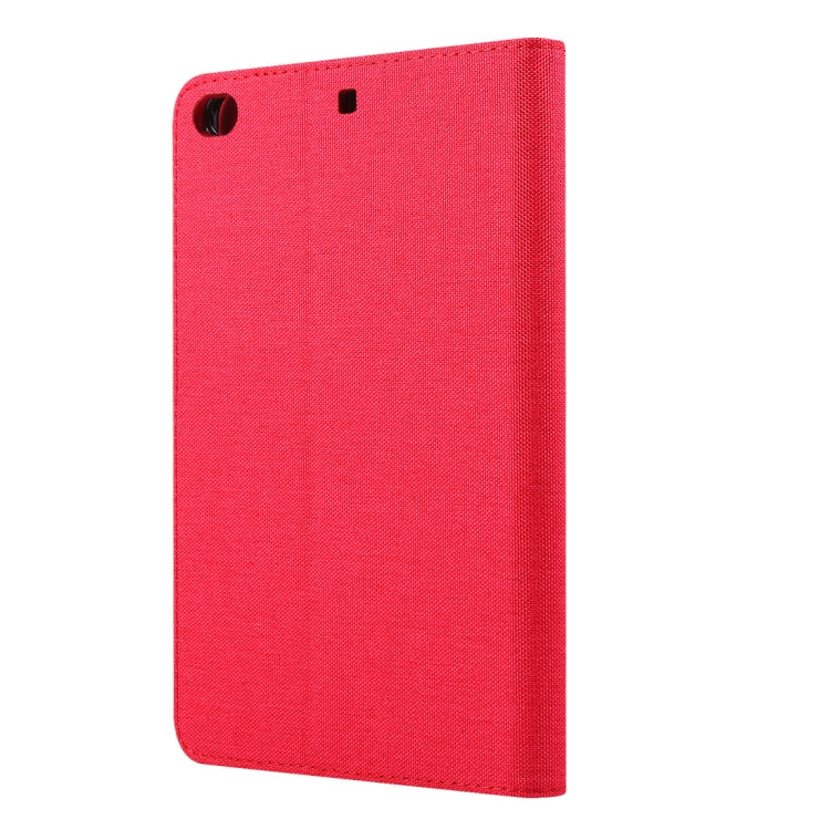 For iPad Mini 4 / 3 / 2 / 1 Cloth Teature Horizontal Flip PU Leather Case with with Holder & Card Slots(Red)