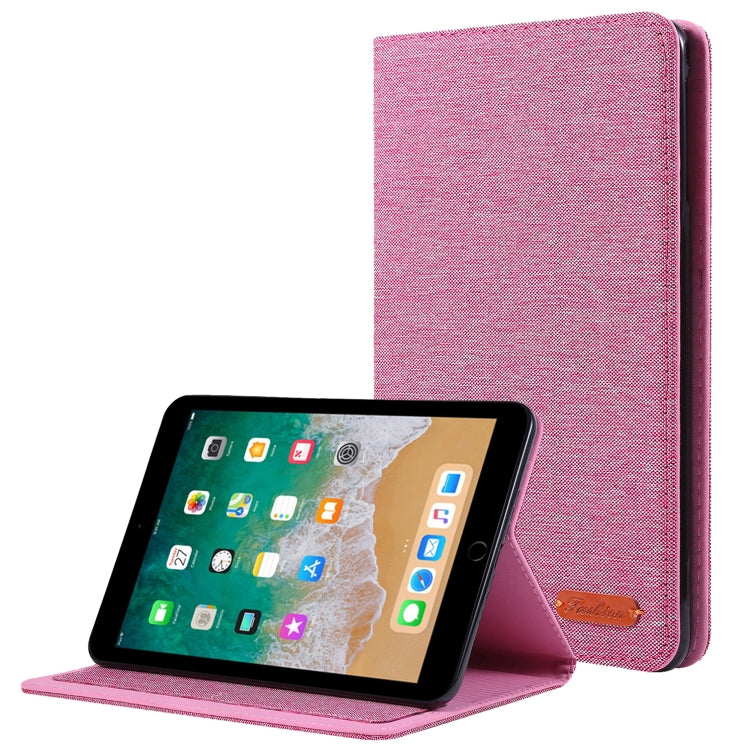 For iPad Mini 4 / 3 / 2 / 1 Cloth Teature Horizontal Flip PU Leather Case with with Holder & Card Slots(Rose pink)