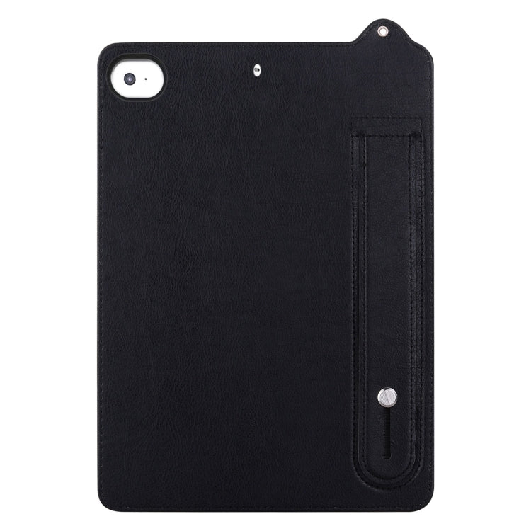 For iPad mini 5 / 4 / 3 / 2 / 1 TPU Leather Back Tablet Case with Wristband(Black)