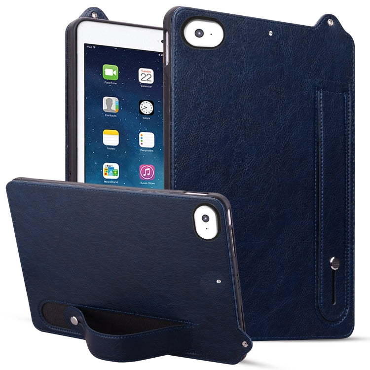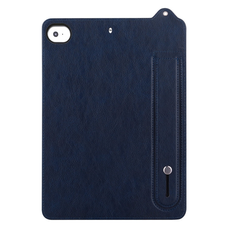 For iPad mini 5 / 4 / 3 / 2 / 1 TPU Leather Back Tablet Case with Wristband(Dark Blue)