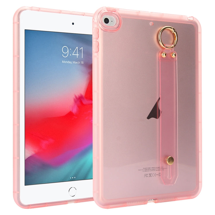 For iPad mini 5 / 4 Wristband Holder PC Hybrid TPU Soft Tablet Case(Pink)