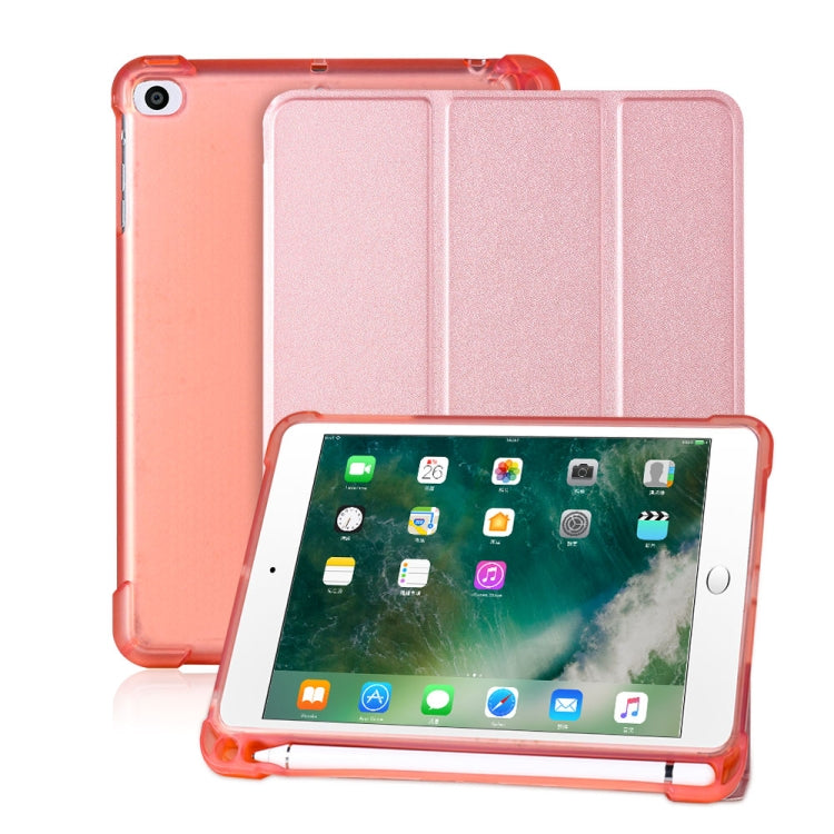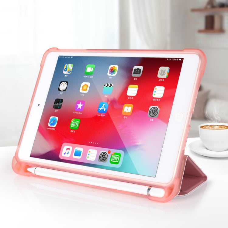 For iPad mini 5 / mini 4 / mini 3 / mini 2 / mini 3-folding Litchi Texture Horizontal Flip PU Leather + Shockproof TPU Case with Holder & Pen Slot(Rose Gold)