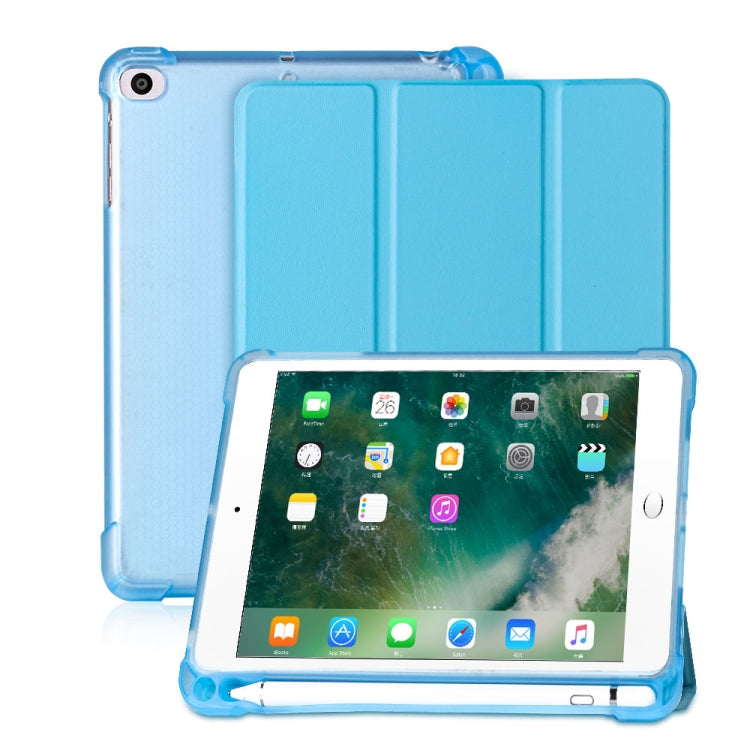 For iPad mini 5 / mini 4 / mini 3 / mini 2 / mini 3-folding Litchi Texture Horizontal Flip PU Leather + Shockproof TPU Case with Holder & Pen Slot(Sky Blue)