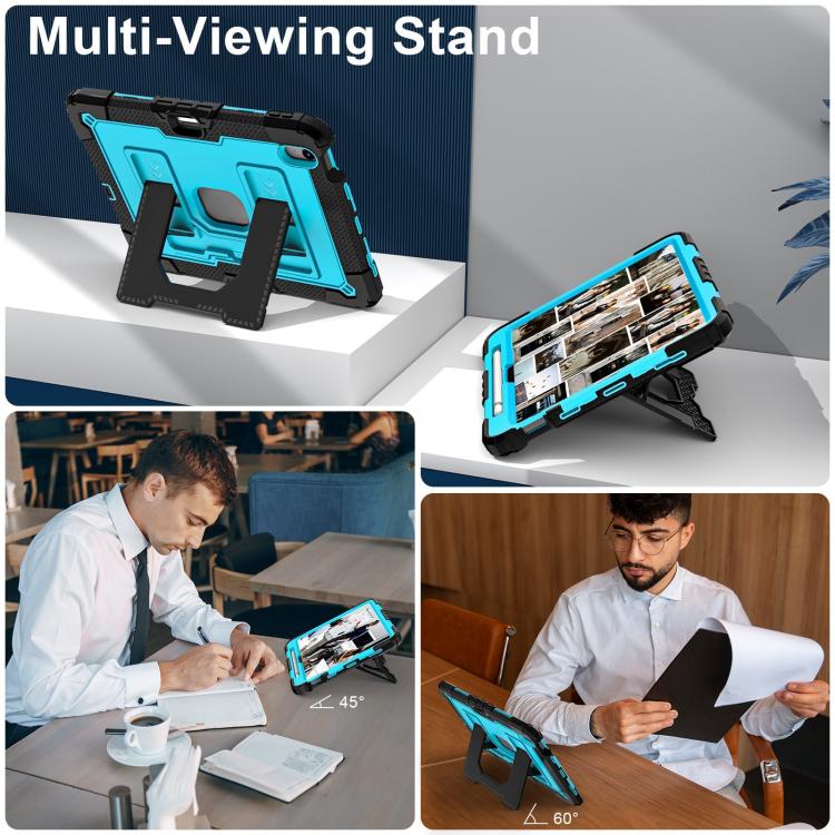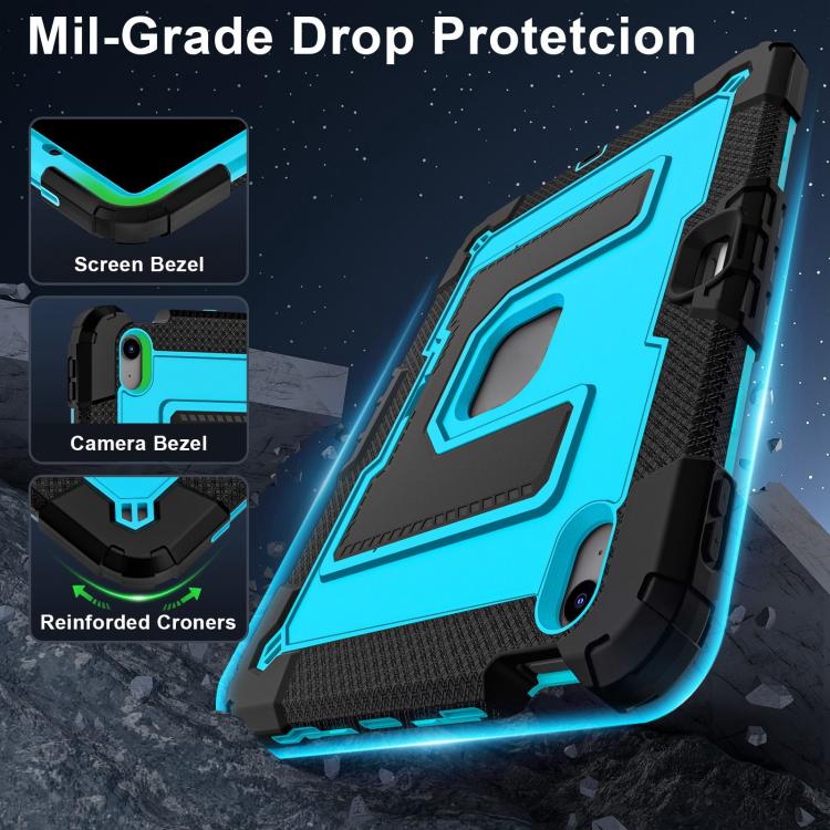 For iPad mini 6 2021 / mini 2024 Big Holder Silicone Hydric PC Tablet Case with Shoulder Strap(Black Blue)