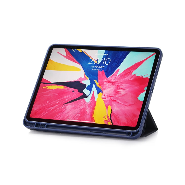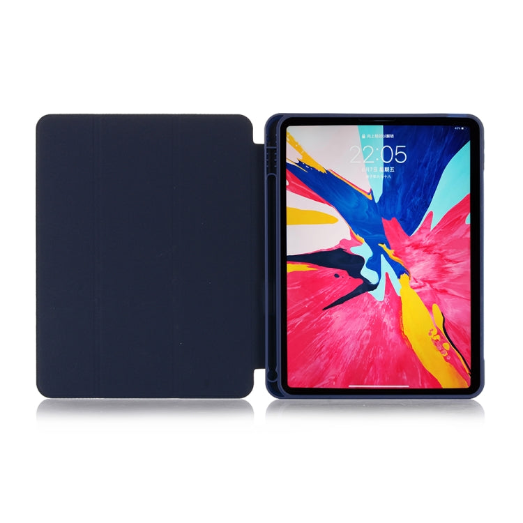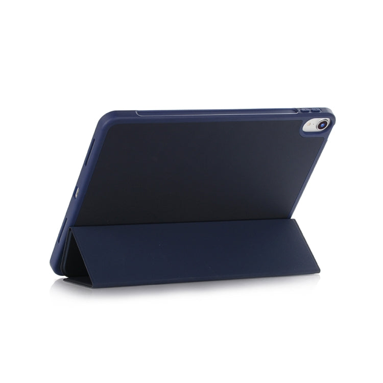 For iPad mini 6 Back Sticker Skin Feel Horizontal Flip Leather Tablet Case with Tri-fold Holder(Dark Blue)